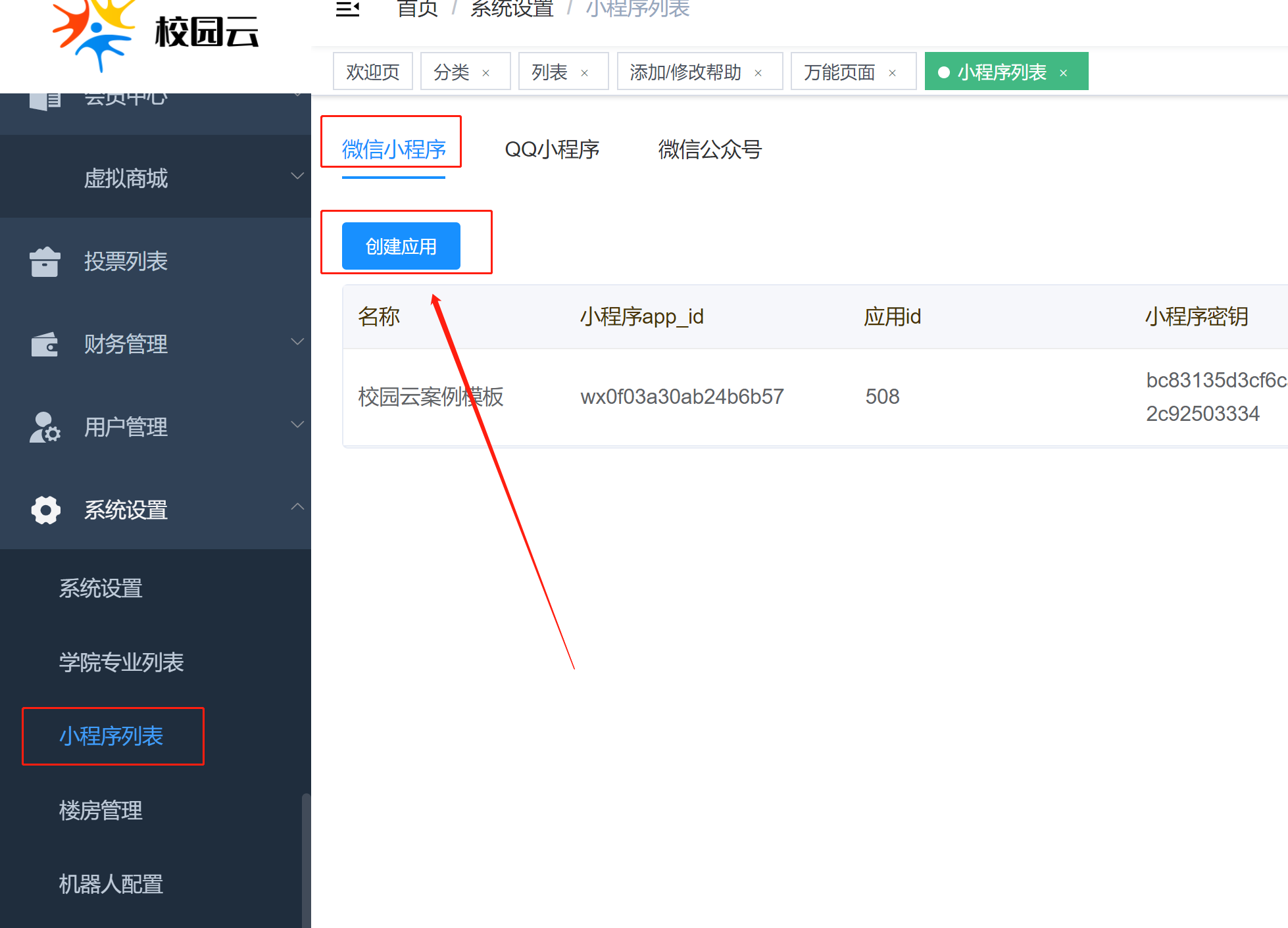 # 小程序配置到校园云后台
